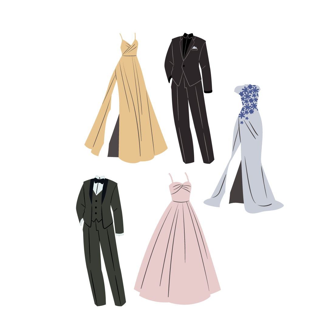 We’re excited to see everyone dressed in black tie for the wedding, so please pull out your most elegant formal wear. Gentlemen, a tuxedo or a dark suit with a bow tie is ideal. Ladies, we suggest a floor-length gown or a formal cocktail dress. If you’d like to coordinate with our colors, we’d love it! But no worries—just show up looking your best, that’s all that matters to us!